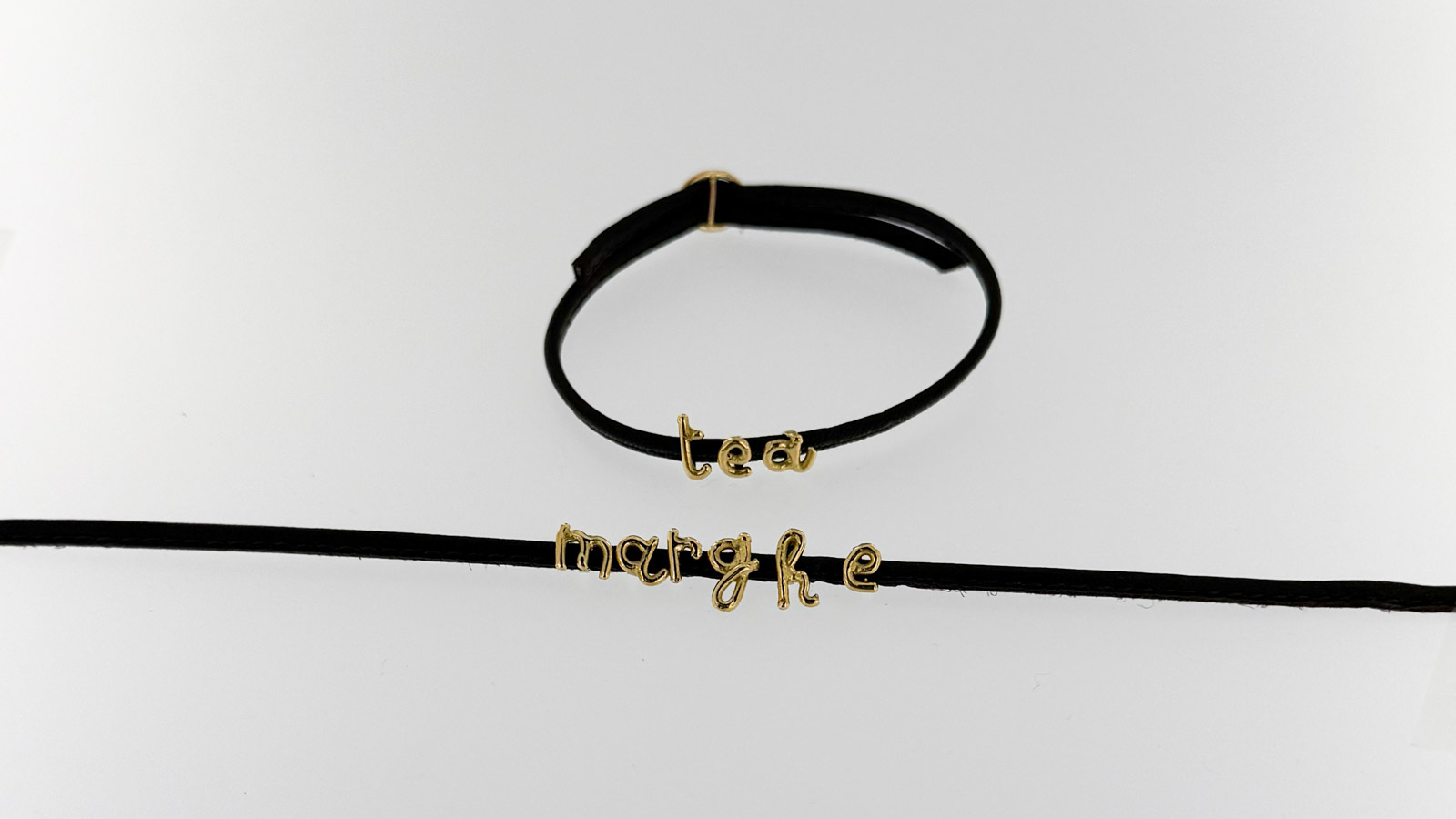 Questo bracciale è composto da una fettuccia in cuoio piatta su cui vengono inserite le lettere: ognuna di esse viene realizzata a mano, riporta quindi un carattere spontaneo in alfabeto minuscolo. La chiusura è una piccola fibbia in oro che rende regolabile la circonferenza: puoi scegliere tra diversi colori di cuoio, e se desideri un simbolo particolare si può realizzare su richiesta. Puoi comporre come preferisci il tuo bracciale scegliendo tra oro 18kt o oro 9kt.